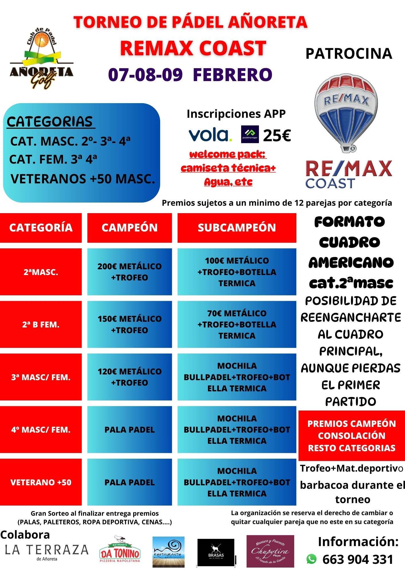 12º ANIVERSARIO PÁDEL AÑORETA/ 2º TORNEO DE PÁDEL ZERO WASTE ENERGY