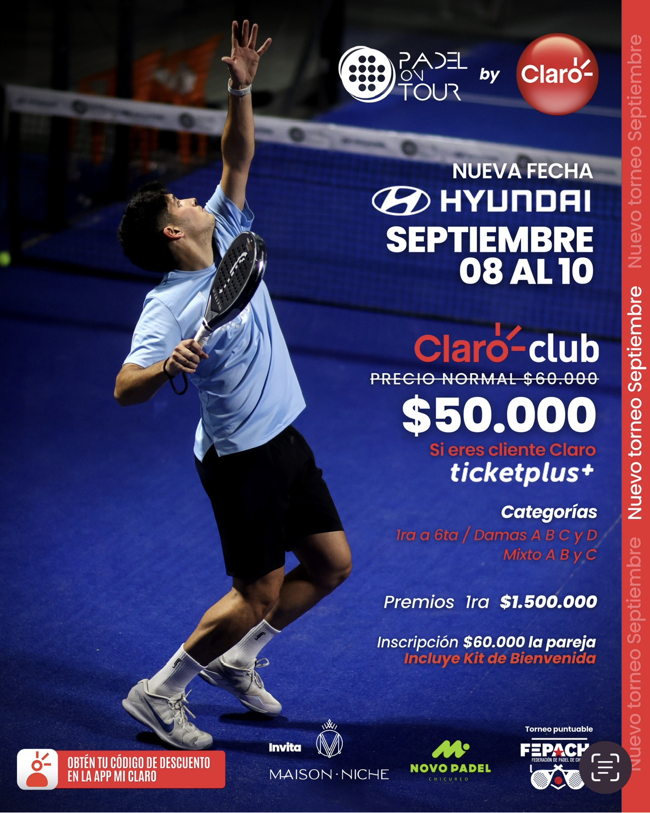 NUEVA FECHA PADEL ON TOUR BY CLARO!! SEPTIEMBRE PUNTUABLE FEPACHI