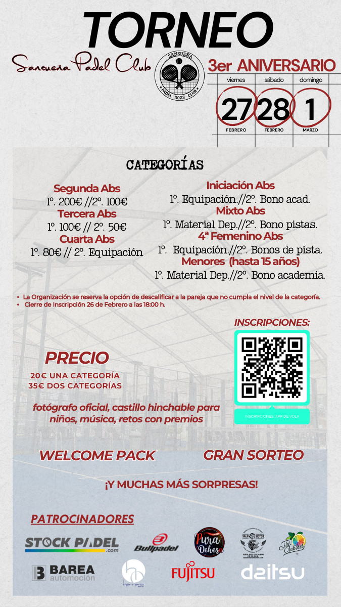 TORNEO III ANIVERSARIO SANSUEÑA PADEL CLUB