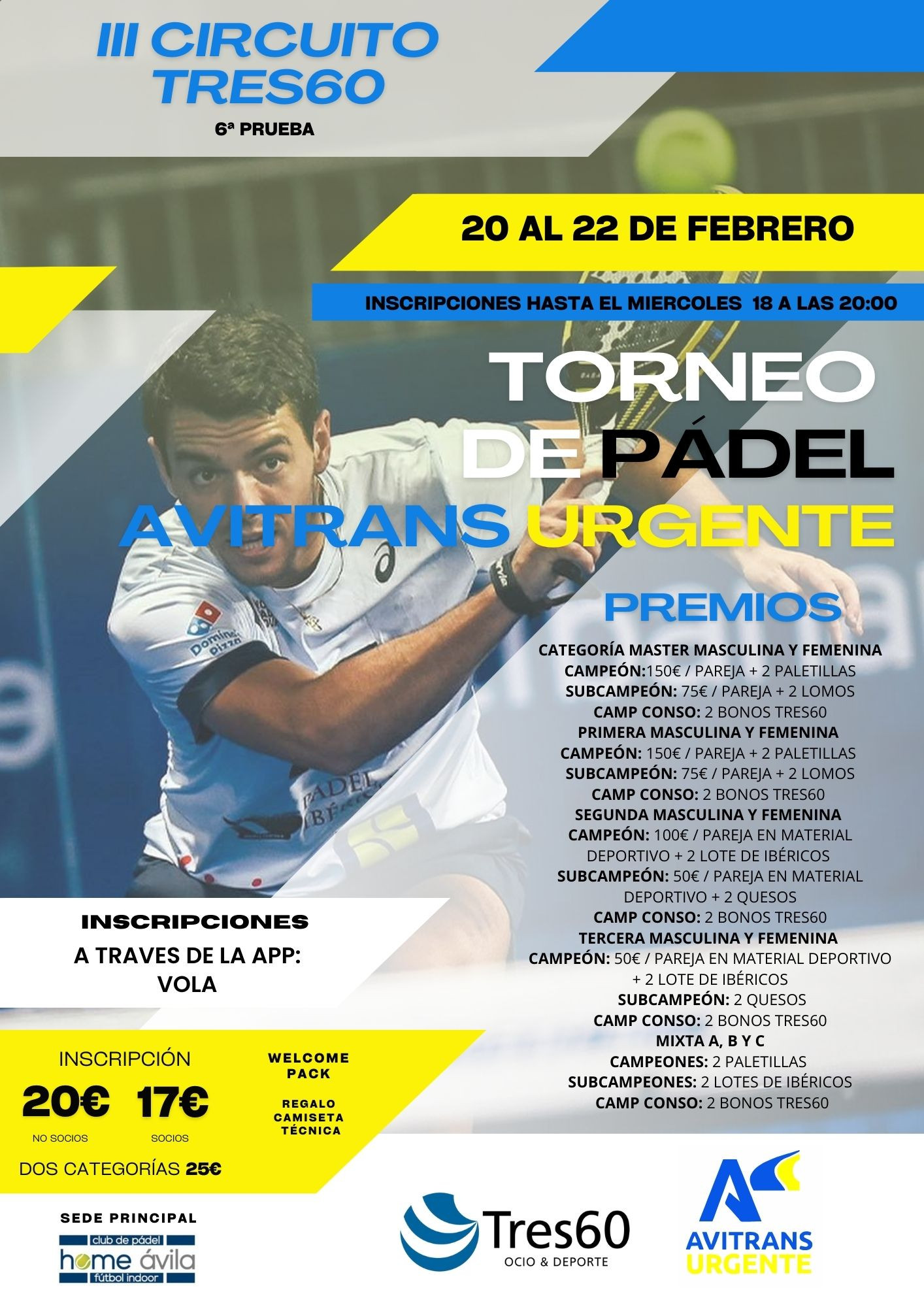 Tres60 es la oferta de ocio y deporte más grande de la ciudad de Ávila, con más de 9000 metros cuadrados indoor divididos en dos instalaciones, Tres60 Ocio y Deporte y Home Pádel Ávila, con multitud de servicios y actividades. TRES60 OCIO Y DEPORTE - 6 PISTAS DE PÁDEL - GIMNASIO + CON 4 SALAS DE CLASES - SALA ENTRENAMIENTO FUNCIONAL - 2 PARQUES INFANTILES - CAFETERÍA RESTAURANTE - SALA DE EVENTOS HOME PÁDEL ÁVILA - 8 PISTAS DE PADEL - CAMPO DE FÚTBOL INDOOR - SALA POLIVALENTE - ZONA INFANTIL - CAFETERÍA Tres60 es la oferta de ocio y deporte más grande de la ciudad de Ávila, con más de 9000 metros cuadrados indoor divididos en dos instalaciones, Tres60 Ocio y Deporte y Home Pádel Ávila, con multitud de servicios y actividades. - 6 PISTAS DE PÁDEL - GIMNASIO + CON 4 SALAS DE CLASES - SALA ENTRENAMIENTO FUNCIONAL - 2 PARQUES INFANTILES - CAFETERÍA RESTAURANTE - SALA DE EVENTOS HOME PÁDEL ÁVILA - 8 PISTAS DE PADEL - CAMPO DE FÚTBOL INDOOR - SALA POLIVALENTE - ZONA INFANTIL - CAFETERÍA